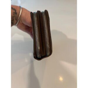 Dooney & Bourke Brown Leather Double-Zip Wallet With Snap Closure For Women