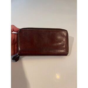 This wallet tells a story of timeless elegance and practicality. Crafted from rich brown leather, its double-zip design whispers of secure organization, and its snap closure ensures your essentials stay in place. A polished accessory for the discerning woman who treasures both style and functionality.