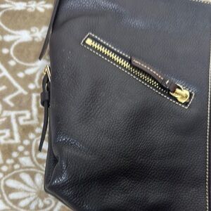 This Dooney & Bourke hobo bag showcases a rich brown leather finish with a slouchy, casual design. The bag features dual leather straps and elegant metal hardware, making it a stylish and functional accessory for any occasion. See all photos they are part of description. Great shape has surface scratches that are hard to see.