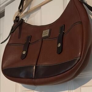 Elevate your style with the Dooney & Bourke Brown Leather Shoulder Bag. Crafted with premium leather, this bag offers both elegance and functionality. Perfect for any occasion. Marks in and out pictured.