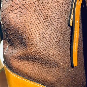 This sophisticated tote from Dooney & Bourke features a rich brown leather body with stylish buckle accents. The structured design ensures durability and a timeless look, making it a perfect accessory for any occasion.
