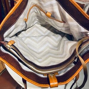 Dooney & Bourke Brown Leather Tote with Buckle Details