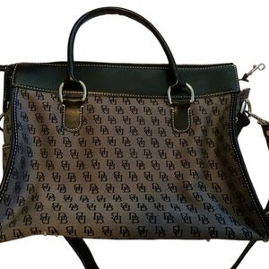 Dooney & Bourke Brown Leather/Canvas Logo Double Pocket Tote w/Crossbody strap
