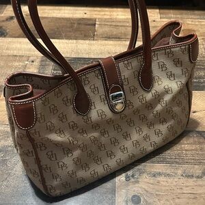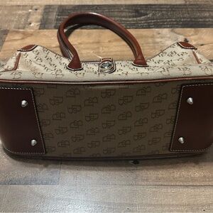 Excellent condition! Elevate your style with the Dooney & Bourke Brown Monogram Tote Bag. This elegant bag features a classic monogram design, perfect for any occasion. The rich brown color adds a touch of sophistication to your ensemble. Multiple sections and pockets inside.