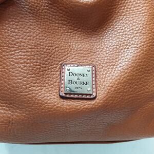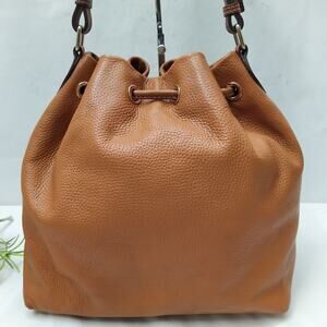 Dooney & Bourke Brown Pebbled Leather Drawstring Bucket Shoulder Bag