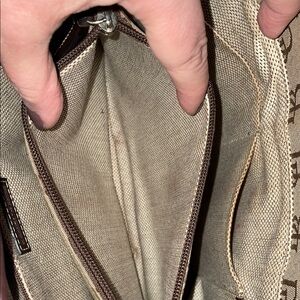 Dooney & Bourke Brown Satchel with Structured Shape and Monogram Pattern