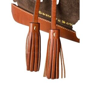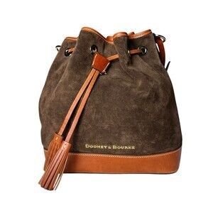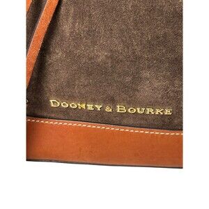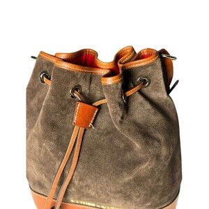 Dooney & Bourke Brown Suede Leather Drawstring Bucket Shoulder Bag Red Interior