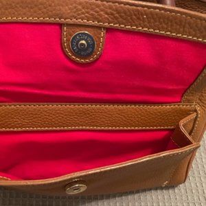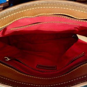 Dooney & Bourke Brown Tan Camel Natural Leather Satchel Purse Bag Red Lining Key