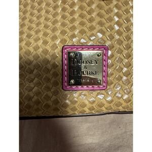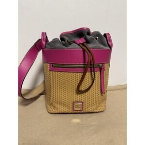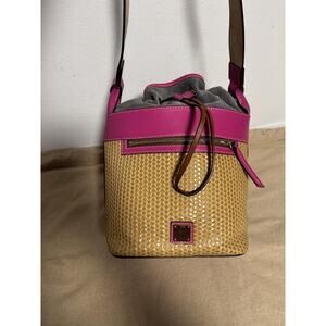 Dooney & Bourke Bucket Bag Womens Pink Tan Drawstring Shoulder Woven Leather