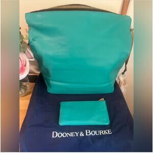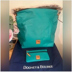 Dooney & Bourke Calf Sloan Hobo Tote in Turquoise with Matching Zip Pouch