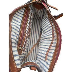 Dooney & Bourke Camden Collection Black Nylon Satchel Tan Leather