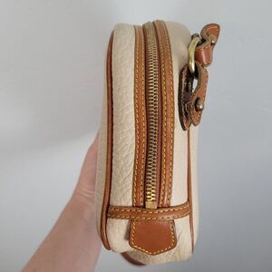 Dooney & Bourke Camera Zip Top Crossbody Bag Leather Cream Beige Brown