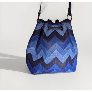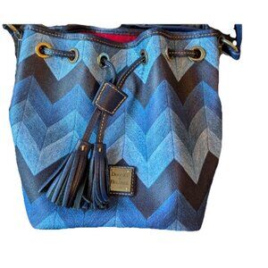 Dooney & Bourke Chevron Blue Kendall Pebbled Leather Handbag Crossbody Tote