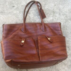Dooney & Bourke Cognac Texture Leather Large Double Handle Tote Bag. Interior Zipper bag in the middle and zipper pocket on side. Two front small pockets with snaps.