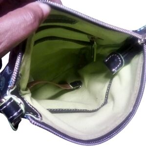 Explore the galaxy with this vibrant Star Wars themed crossbody bag. Featuring a striking multicolor design, this bag is perfect for fans and fashion enthusiasts alike. This Disney Dooney & Bourke Letter Carrier released in May 2015 for Star Wars Weekends at Walt Disney World. Features Yoda, Storm Trooper, Darth Vader, R2-D2, C-3PO, and light saber amidst a vibrant pattern of green, pink, blue, black, and white. The crossbody strap is black with green accents.