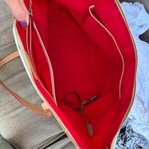 One outside zip pocket. One inside zip pocket. Two inside pockets