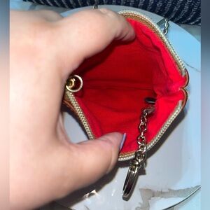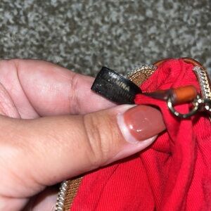Callout: Has very tiny ink mark on red cloth all the way in a corner of the seam of the interior fabric can be cleaned.