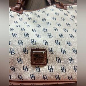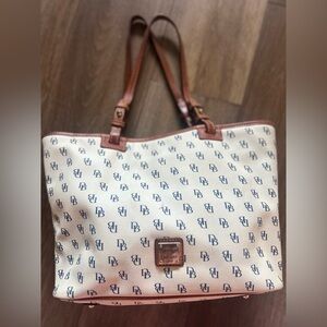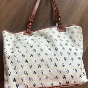 Dooney & Bourke Cream and Brown with Navy Logo Tote Bag