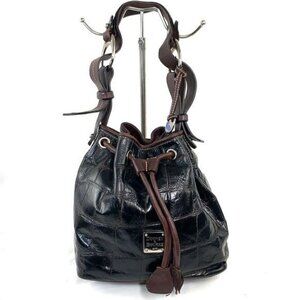 Dooney & Bourke Croc Embossed Leather Drawstring Shoulder Bag-Brown 10”W x 10”H