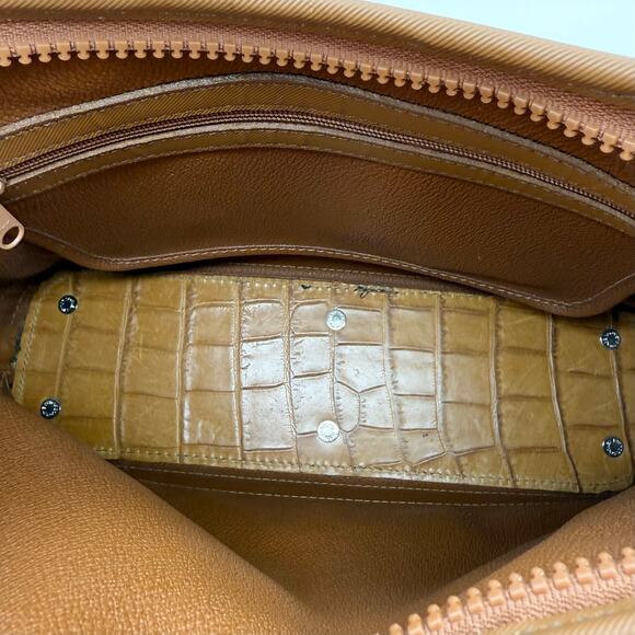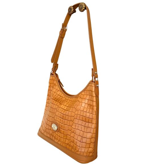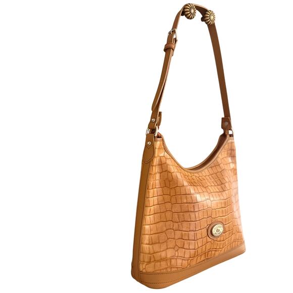 Dooney & Bourke Croc Embossed Leather Shoulder Bag Tan Brown Vintage Hobo Tote