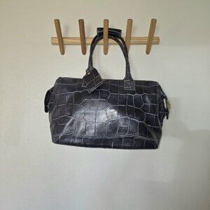 Dooney & Bourke Croc Embossed Leather Travel Duffel 22” Black Overnight Bag