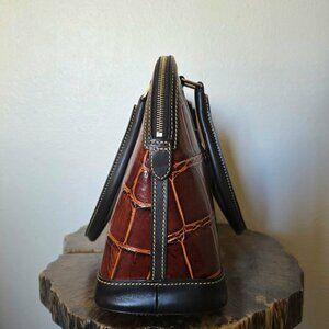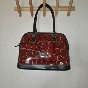 Dooney & Bourke Croco Embossed Leather Domed Satchel Bag Cognac Brown Tmoro VTG