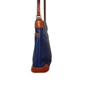 Dooney & Bourke Navy Blue & Brown Pebbled Leather Adjustable Crossbody Bag