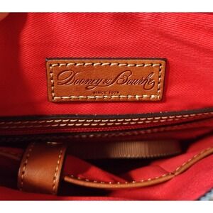 Interior branding includes leather logo patch embossed Dooney & Bourke Since 1975 plus woven DOONEY & BOURKE, INC. tag.