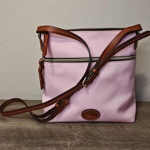 Dooney & Bourke Crossbody Bag Womens Pink Canvas Nylon Leather Trim Purse Zip