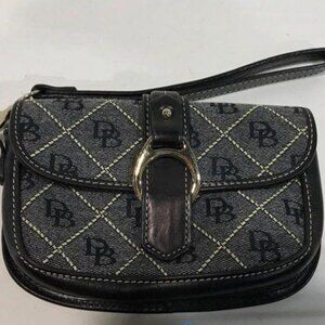 Dooney & Bourke DB Logo Fabric Black Leather Mini Wristlet