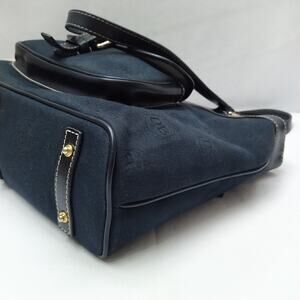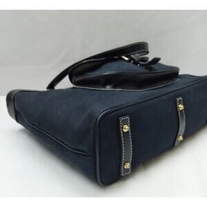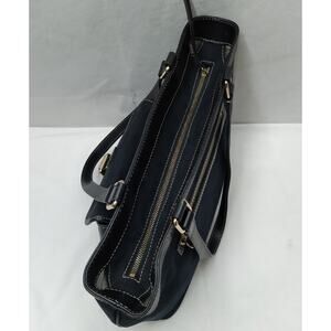 Dooney & Bourke Dark Blue Canvas DB Printed Buckle Pocket Zipper Tote Bag