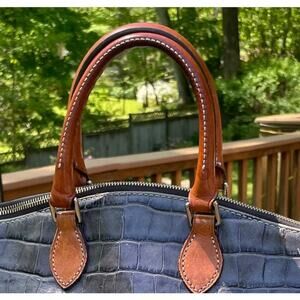 Dooney & Bourke Denison Domed Croco Embossed Gray Satchel Handbag