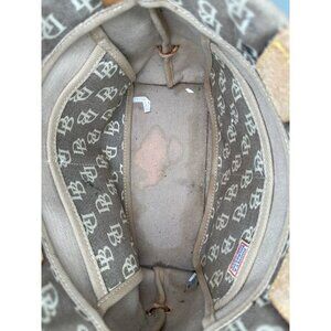 Dooney Bourke Designer Handbag Beige And Brown Canvas Bag With Tassels