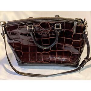 Dooney & Bourke Dillen Crocodile Bag Double Pocket Leather Satchel Reptile