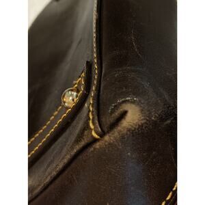 This is a Gorgeous Dooney & Bourke Dillen Crocodile Bag Double Pocket Leather Satchel. It is Embossed Patent Leather in a Reptile Pattern. It measures 14" x 11" x 5" and has a removable shoulder strap. It is in wonderful pre-owned condition. It was very hard to take pics because it is so shiny and reflective. In person, other than just a few light surface scratches and some rubbing to the bottom corners, this bag looks amazing. Please see pics for details.