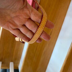 Material: Pebbled leather with Vachetta leather trim. A thicker high quality leather with beautiful grain and texture.