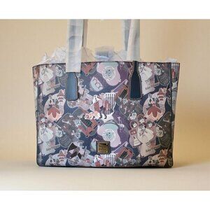 Brand new with tags — rare Disney Parks × Dooney & Bourke Haunted Mansion Trend Tote featuring iconic Ghost Bride, ballroom dancers, graveyard scene, floating instruments, and villain portraits throughout. Excellent print placement with multiple key characters visible on both sides.