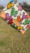 Playful pouch with multicolor Mickey Mouse design. Features tan leather accents.