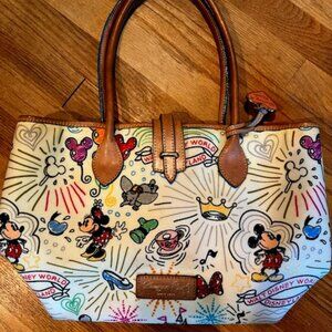 Tongue & loop closure with hidden snaps. Hanging heart charm. Lined in red cotton with back wall zip pocket. Small front wall slip pocket. Attached leather key leash. Exterior is more ivory than white.