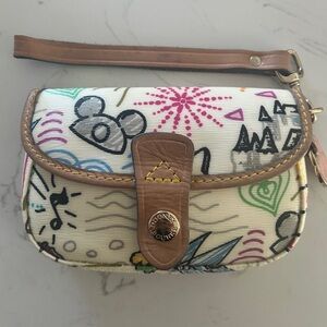 Dooney & Bourke Disney Parks Wristlet–White Sketch Pattern with Tinker Bell- EUC