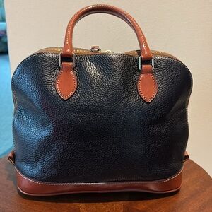 Dooney Bourke Dome top satchel pebble, leather black/cinnamon, brown trim EUC