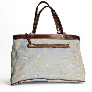 Dooney & Bourke East West Canvas / Leather Trim Donegal Crest Tote Shoulder Bag