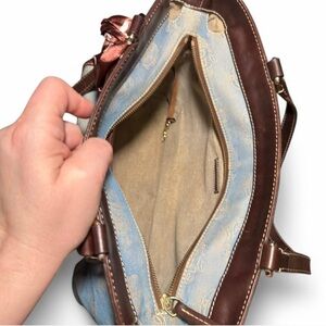 Preowned Dooney & Bourke East West Canvas / Leather Trim Donegal Crest Tote Shoulder Bag