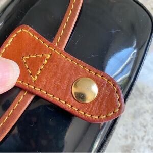 Minor marks to patent leather and small hole from tag in leather piping see pointing pics) as photographed, but overall in excellent used condition! From the Dooney website, this piece is still for sale and is $150 retail.
