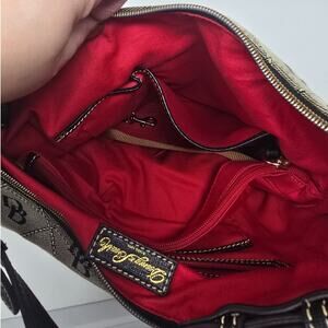 Dooney & Bourke Erica Signature Monogram Leather Trim Hobo Bag Purse Grey Black