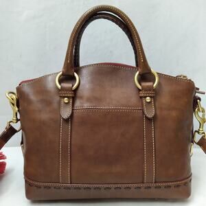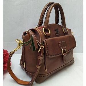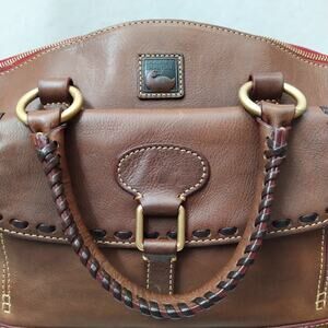 Dooney & Bourke Florentine Brown Leather Buckle Pocket Top Handle Satchel Bag