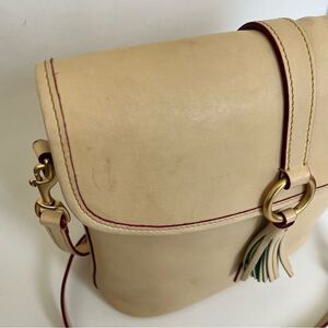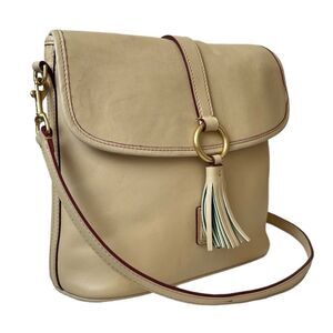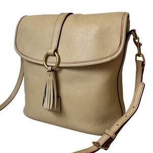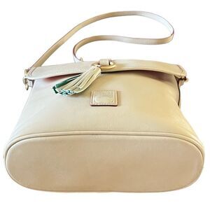 Dooney & Bourke Florentine Leather Crossbody Large Dottie Gold Ring Tassel Beige