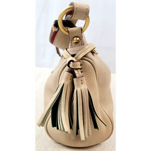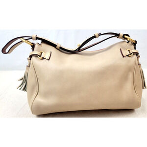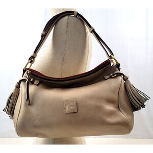 Dooney & Bourke Florentine Leather Tassel Shoulder Bag Natural Tan Hobo Purse