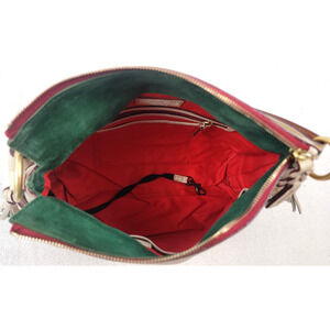 Gorgeous Dooney & Bourke Florentine Leather Shoulder Bag in the color Natural (tan-beige). Crafted from rich Italian vachetta Florentine leather with distinctive green suede trim, brass hardware, and signature tassel details. This luxury Dooney line is known for its heirloom-quality craftsmanship and timeless style.