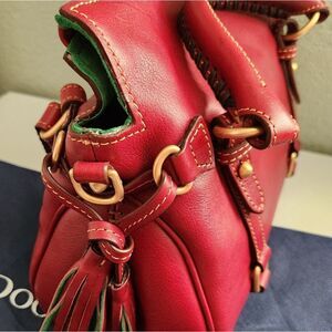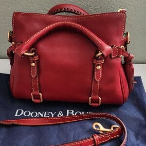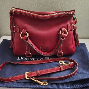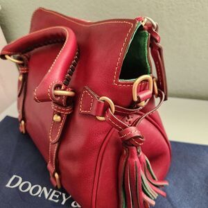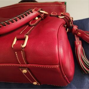 Dark red satchel with gold hardware. Perfect for everyday style. Durable and fashionable.